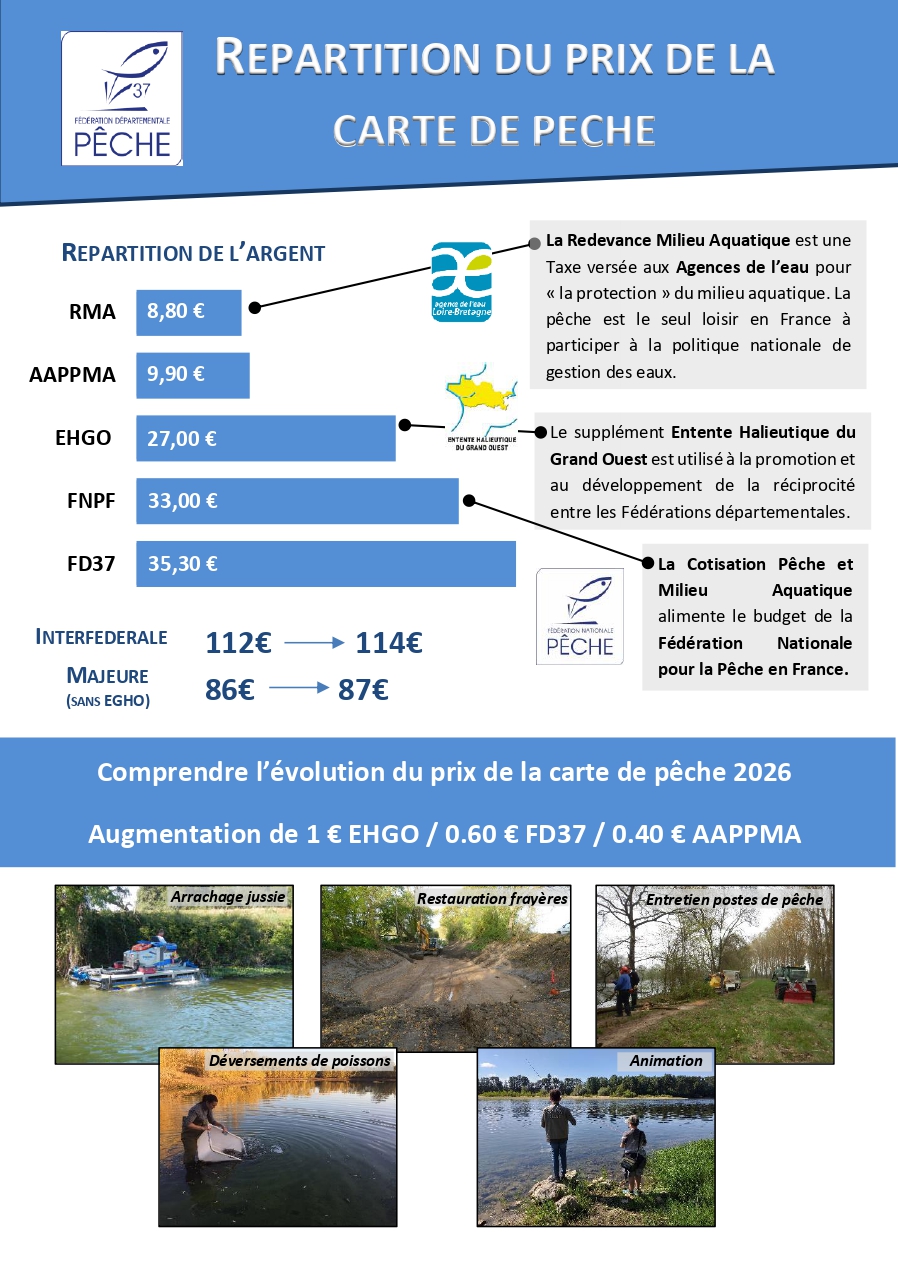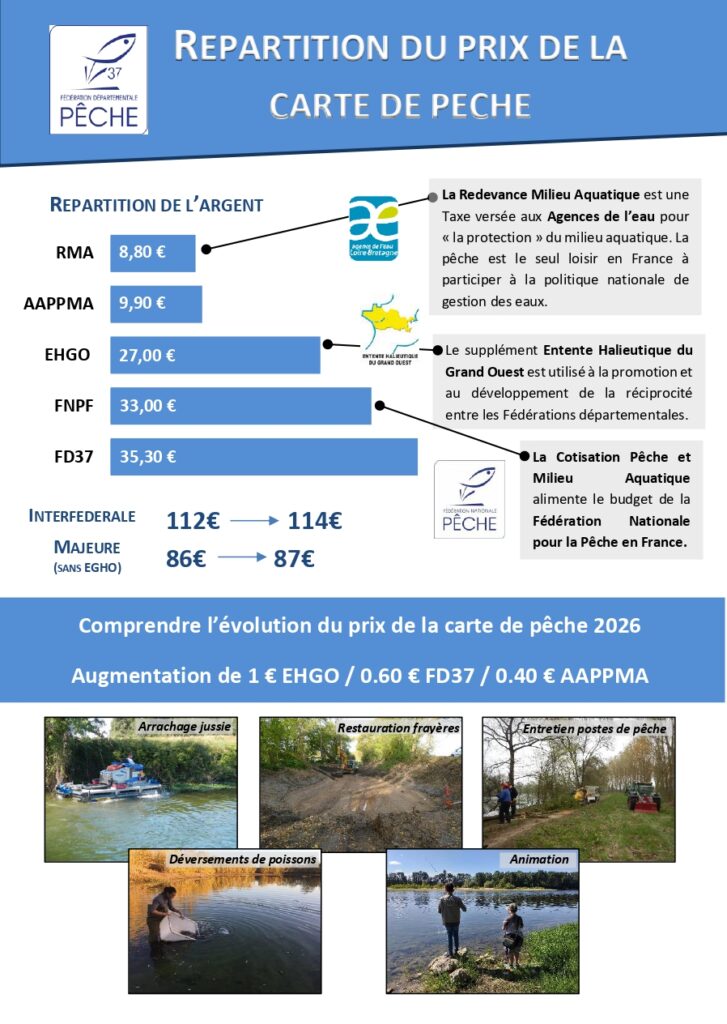 L’achat des cartes de pêche permet l’empoissonnement des plans d’eau fédéraux et des plans d’eau AAPPMA à auteur de plusieurs dizaines de milliers d’euros chaque année.